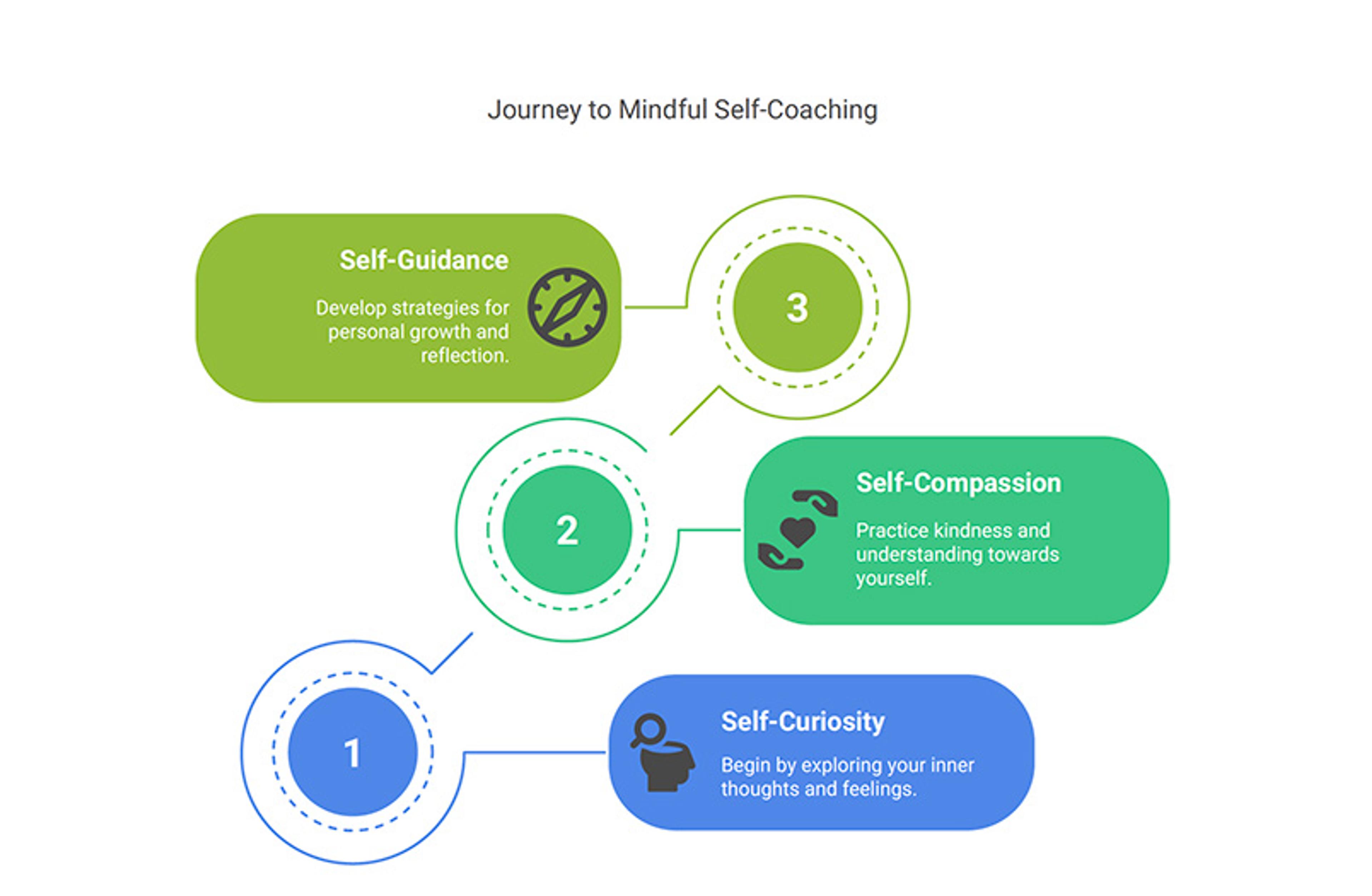 When you experience this kind of self-talk, mindful self-coaching invites you to pause and reflect with a more compassionate, curious perspective. It helps you to respond with awareness and flexibility, instead of criticism and pressure.